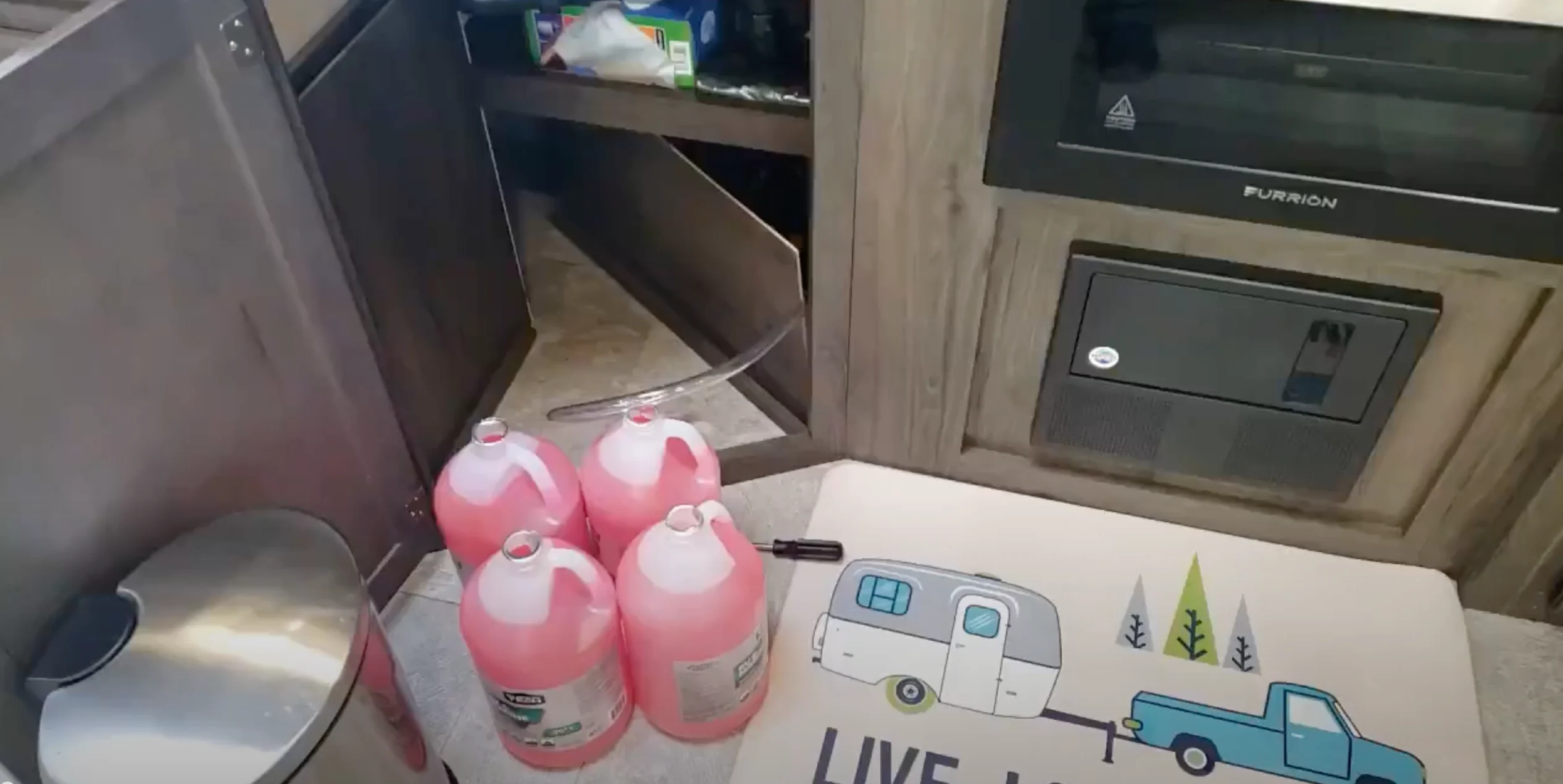 - RV antifreeze (non-toxic, pink stuff—get 2–3 gallons)